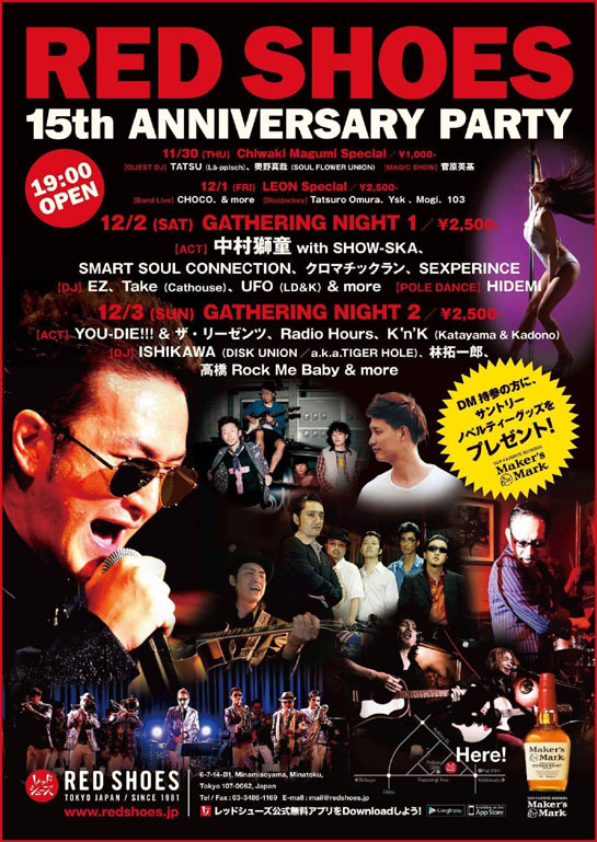 レッドシューズ看板イベントのホストバンド達が15周年を祝い散らかす予定です。