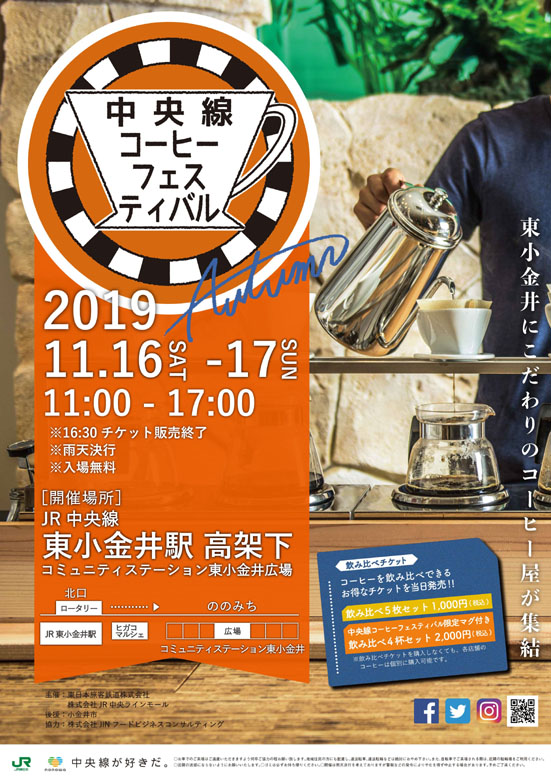 11/16(土)は、美味しいコーヒーと美味しい音楽のブレンディーなイベント『中央線 コーヒーフェスティバル2019 Autumn』にアコースティック三人編成で出演。場所はJR東小金井駅。入場無料!是非!