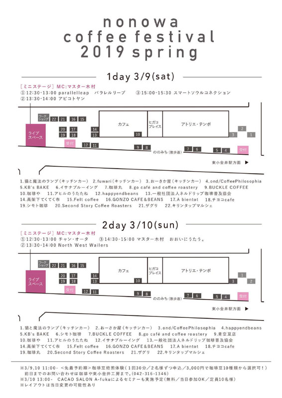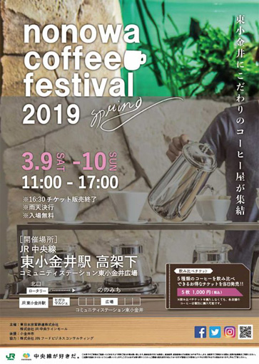 まずは美味しいコーヒーと美味しい音楽のブレンディーなイベント『ノノワ・コーヒー・フェスティバル2019 spring』に3/9(土)出演。場所はJR東小金井駅。入場無料!